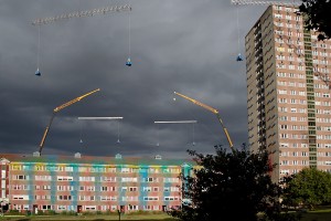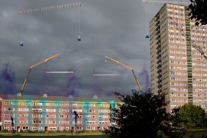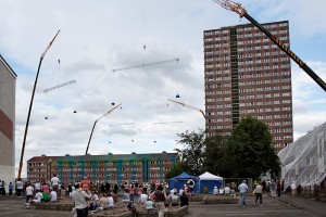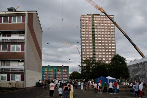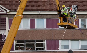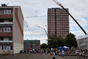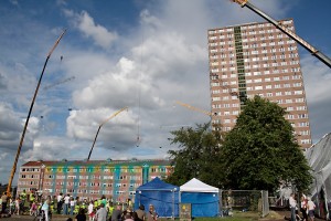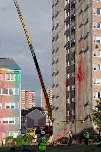 I’ve moved over to this side in case they fire off the buckets on the narrow face of the high-rise block – this angle will give me both the aerial buckets and a partial view of the end-face buckets. (Since I don’t know what the specific plans are, I’m having to try to anticipate what might happen…)